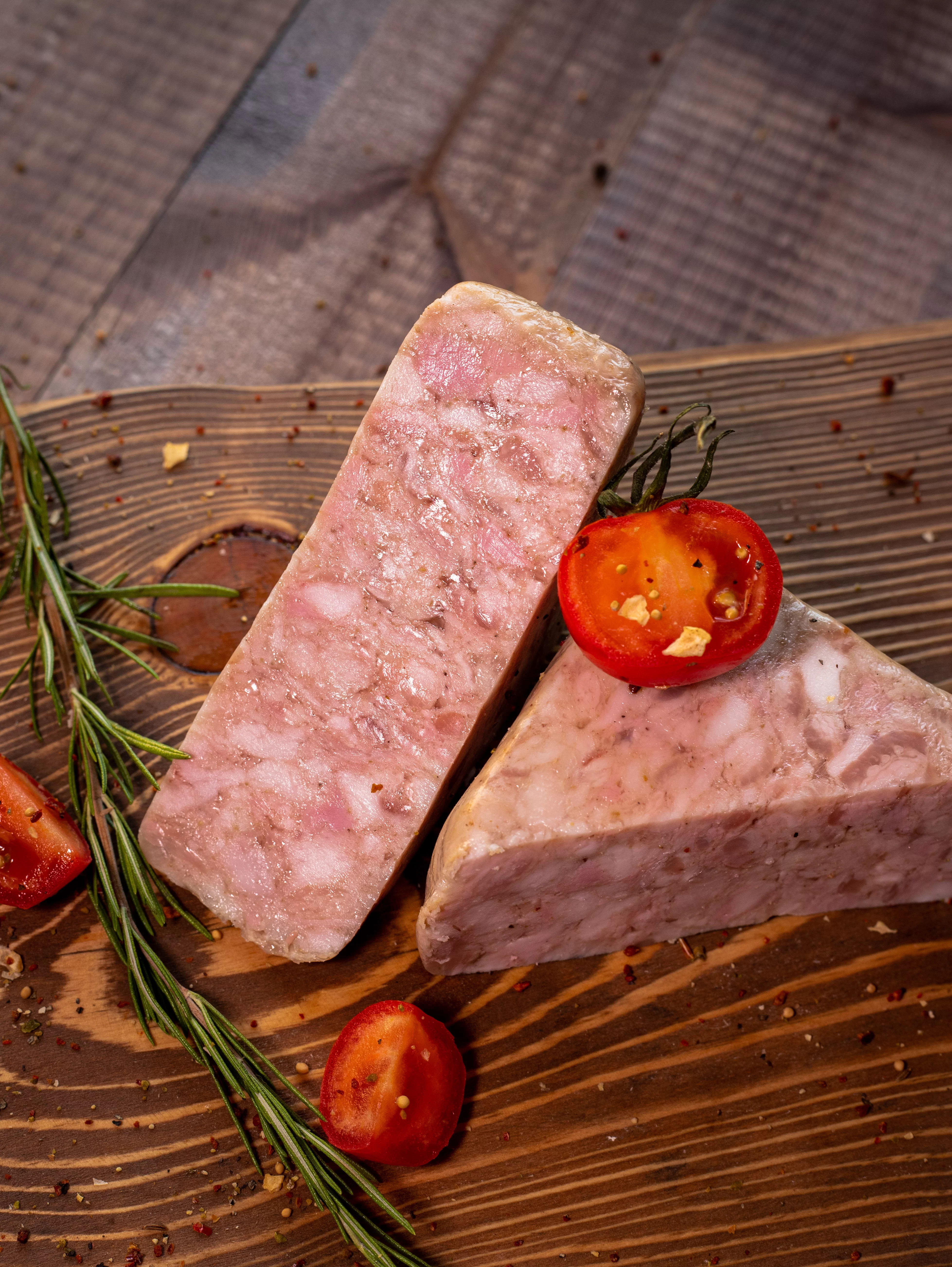 Деликатес, приготовленный из нежного мяса свиных голов по традиционной технологии. Особый пряный вкус продукту придает добавление черного перца и лаврового листа.
