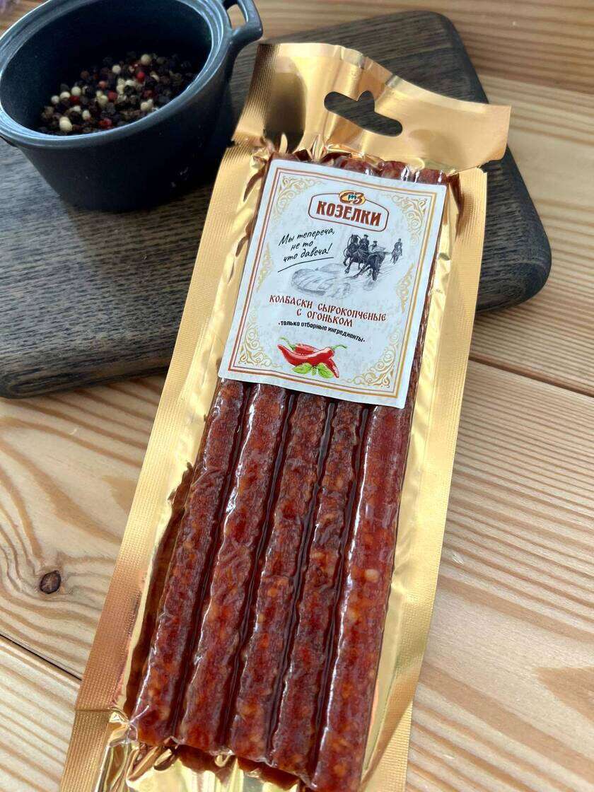 Сырокопченые колбаски с огоньком - для тех, кто хочет попробовать что-то необычное и острое. Отборная свинина и говядина, мелкие кусочки шпика и уникальная смесь ароматных пряностей создают утонченный вкус колбасок и великолепный аромат.