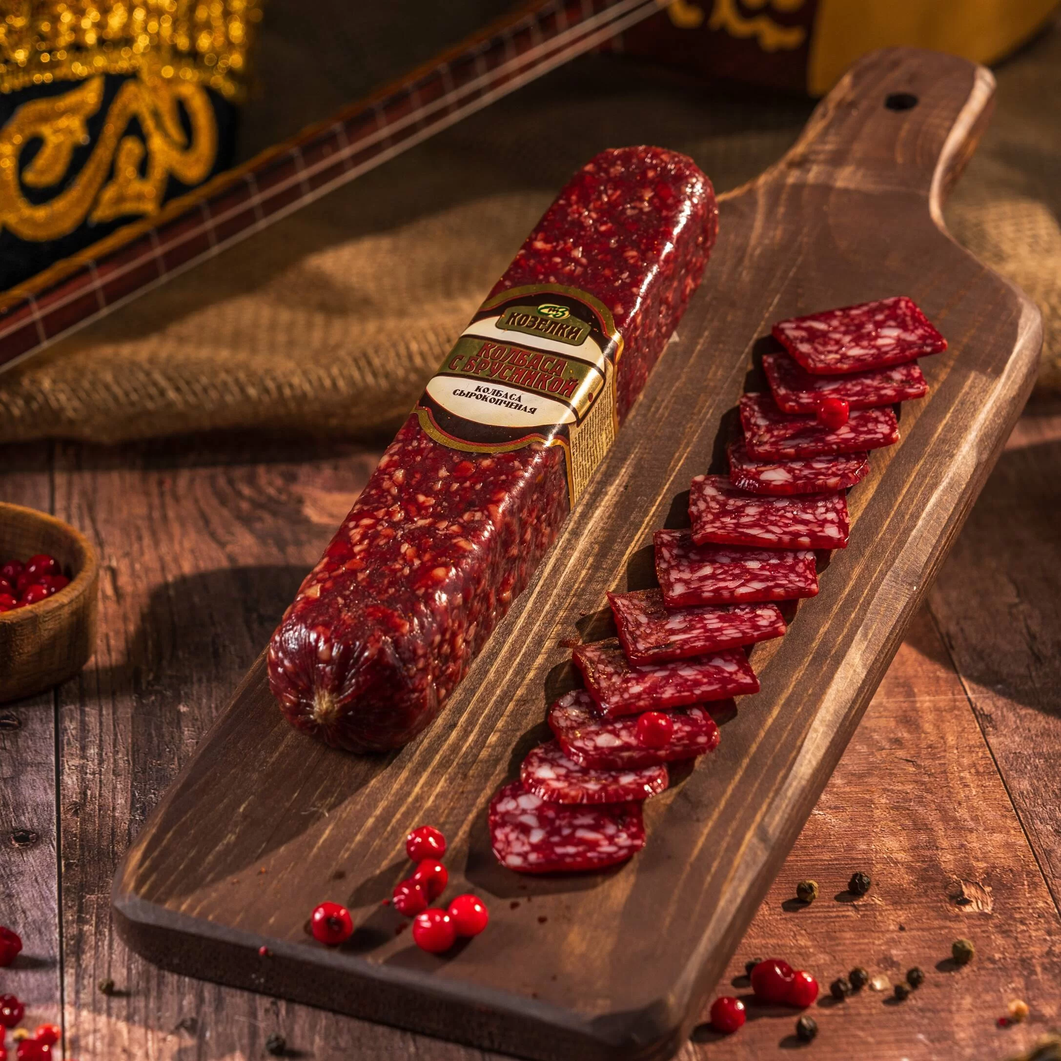 Первый раз попробовав удивилась такому яркому аромату брусники. На вкус очень приятная и необычная, поскольку аромат брусники и специй чувствуется ярко. Очень нестандартная колбаска, но очень вкусная. Я удивлена!